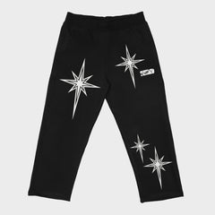 Starborn brings celestial energy to ground level. Printed with luminous white star bursts across each leg, these black sweatpants channel divine light and minimal cosmic detailing. Cut from heavy 350 GSM looper cotton with deep side pockets and a smooth straight fit, they’re equal parts comfort and statement.